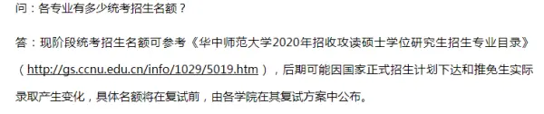 华中师范大学:统考招生名额后期可能因国家正式招生计划下达和推免生实际录取产生变化,具体名额将在复试前,由各学校在其复试方案中公布。