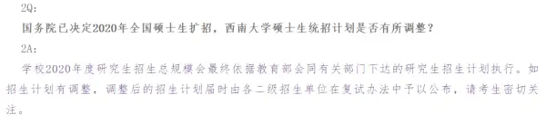 西南大学:如招生计划有调整,调整后的招生计划届时由各二级招生单位在复试办法中予以公布,请考生密切关注。