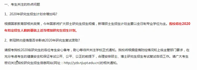 南京邮电大学:根据国家教育部相关政策,今年国家将扩大硕士研究生招生规模,新增硕士生招生计划主要以全日制专业学位为主。我校将在2020年拟定招生人数的基础上适当增加研究生招生计划。