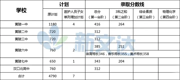 目前,新洲区、黄陂区各类高中2021年录取分数线也已经公布。