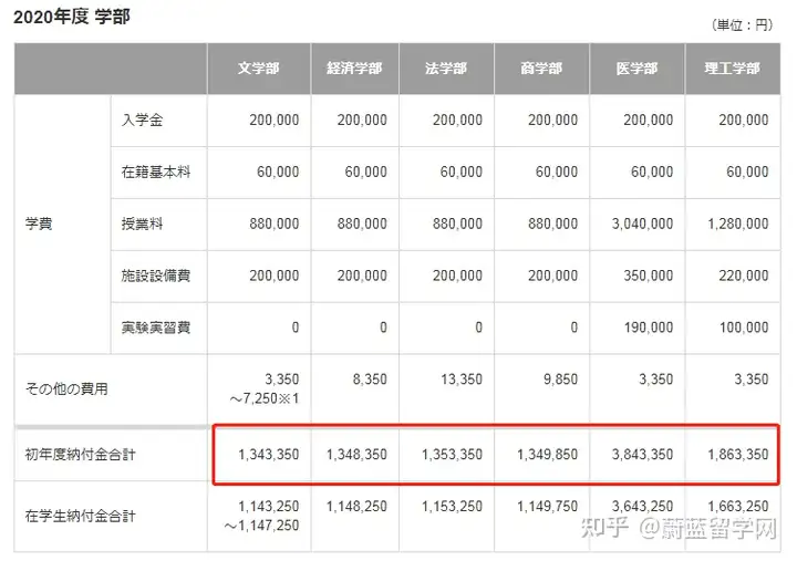 举例:庆应义塾大学学费