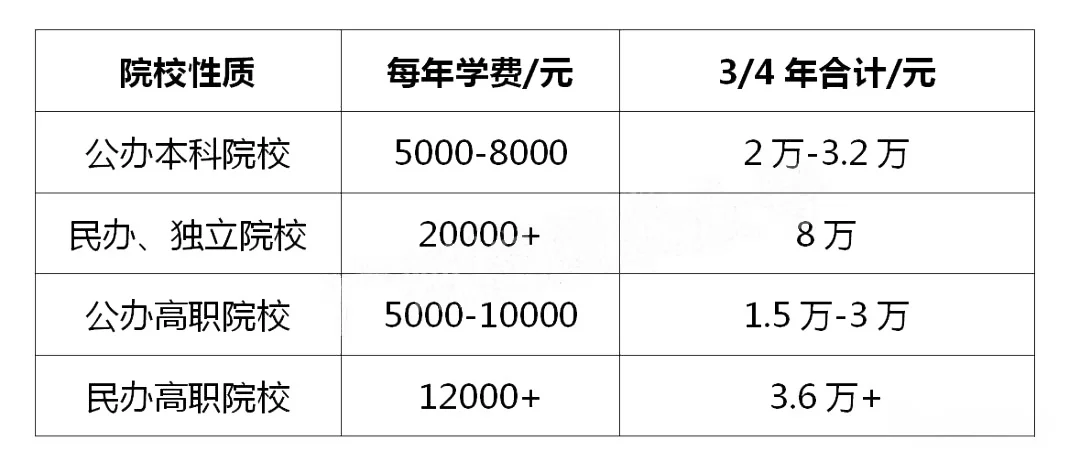 全国有2000多所高校,每个高校还有几十甚至上百个专业,还有不同的学历层次,学费差别非常大。