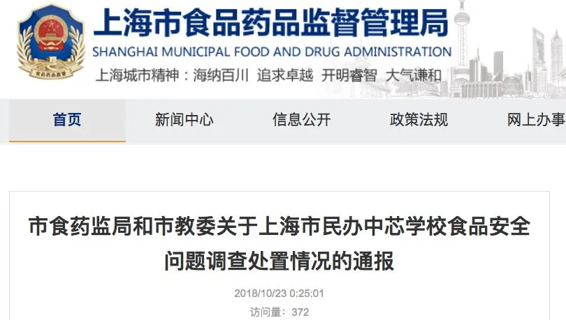 10月23日凌晨0:25,上海市食药监局和市教委联合发布了《关于上海市民办中芯学校食品安全问题调查处置情况的通报》(以下简称“通报”)表示,经查,民办中芯学校食堂存在蔬菜霉变、半成品提前标注加工日期、调味品和半成品超过标注的保质期限等问题。