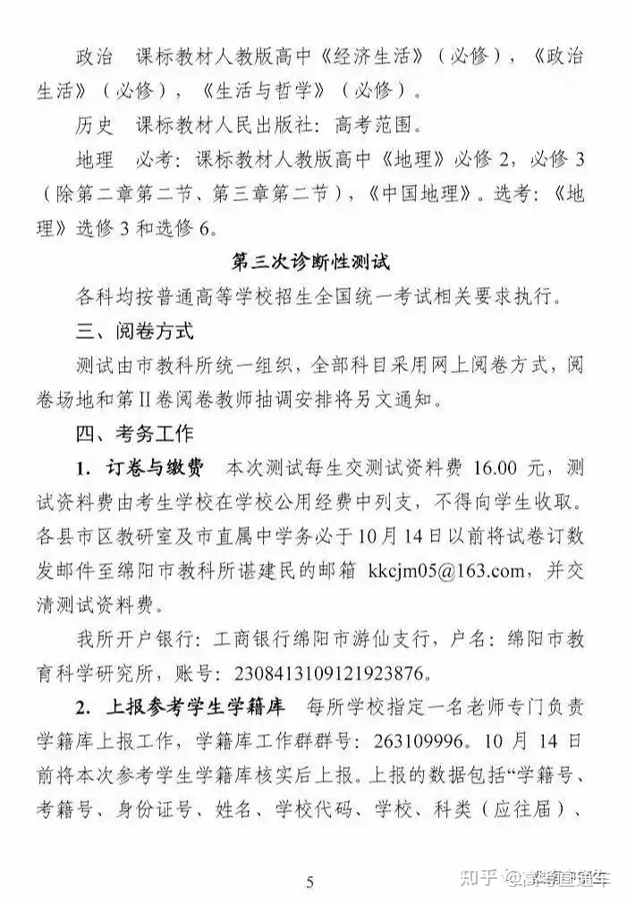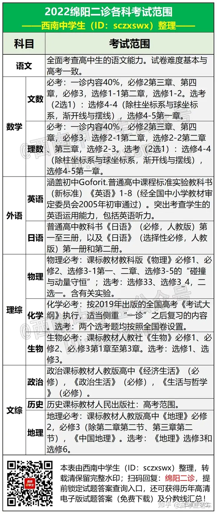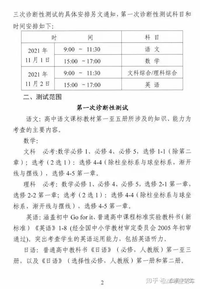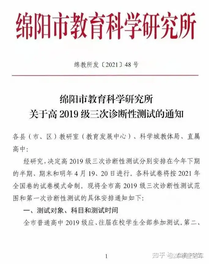 2.2022绵阳二诊考试时间及考试范围