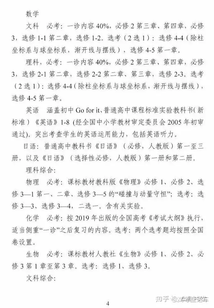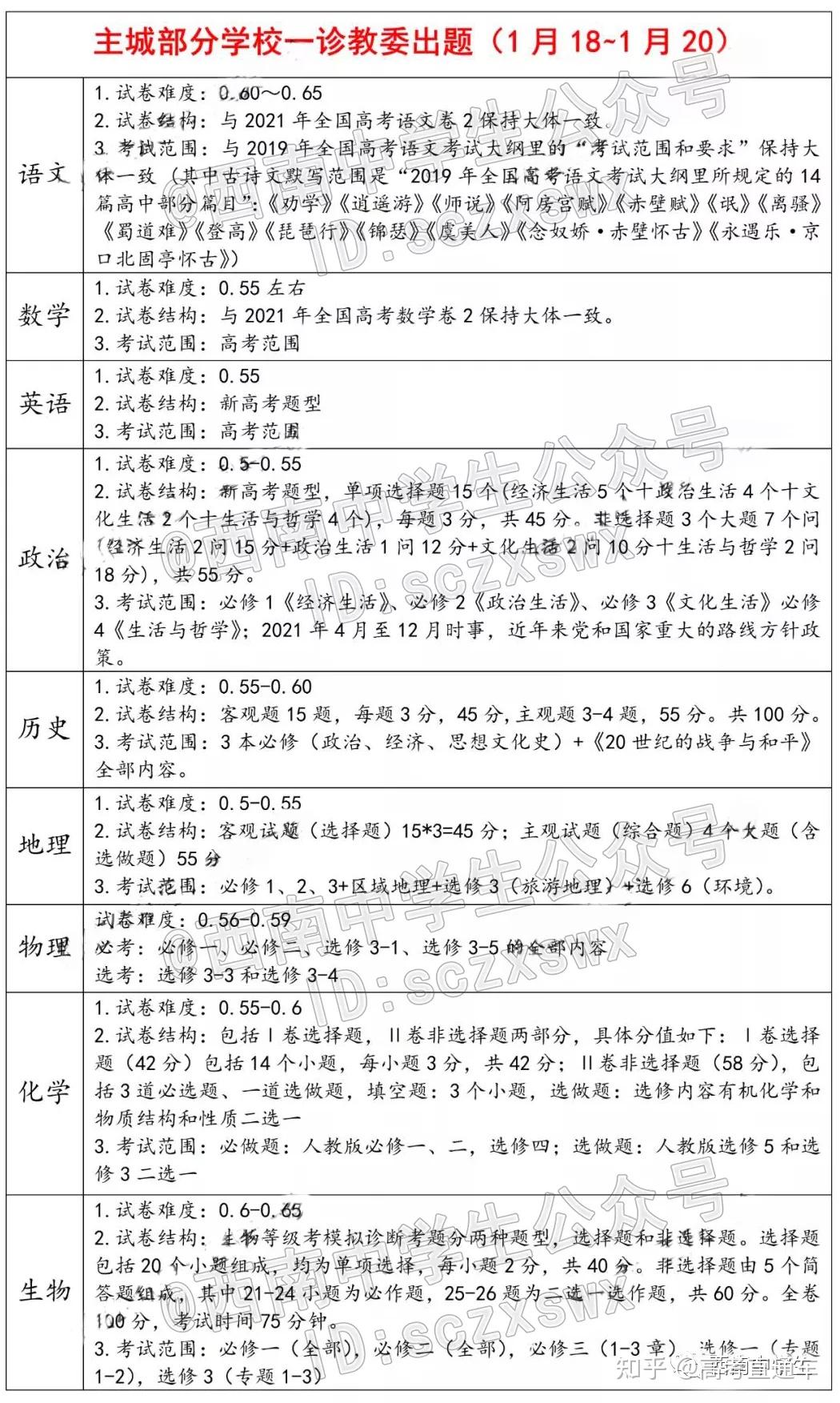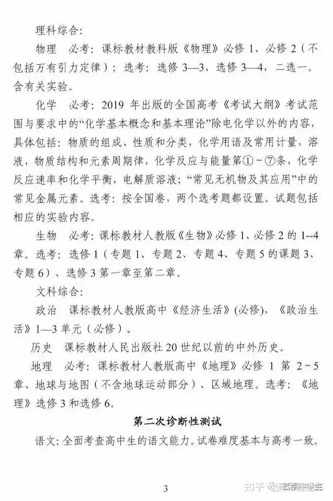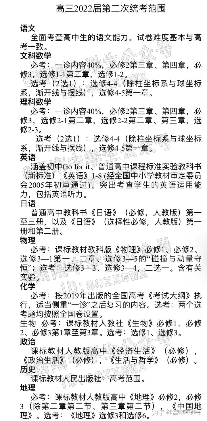 重庆一诊考试范围: