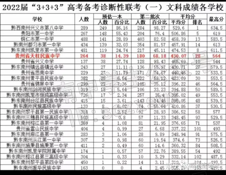 贵州部分学校分数情况: