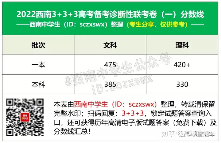 1.2022西南“3+3+3”贵州联考分数线