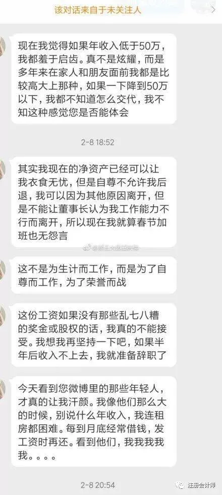 投稿的内容比较长,注会菌给大家简单总结一下:博主年轻的时候薪资水平特别低,别说年收入,连租房都很困难,月底要靠借钱才能撑到发工资。