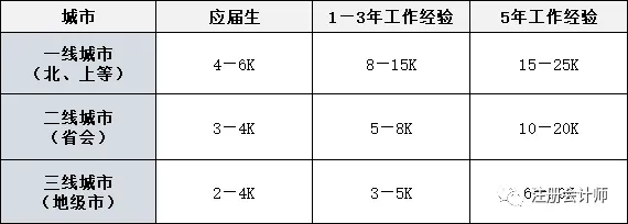 下图是考出CPA后在不同时期、不同城市的一些薪资差异。