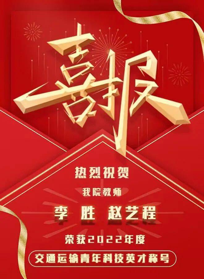 原标题:喜报|我院教师李胜、赵艺程荣获2022年交通运输青年科技英才称号!