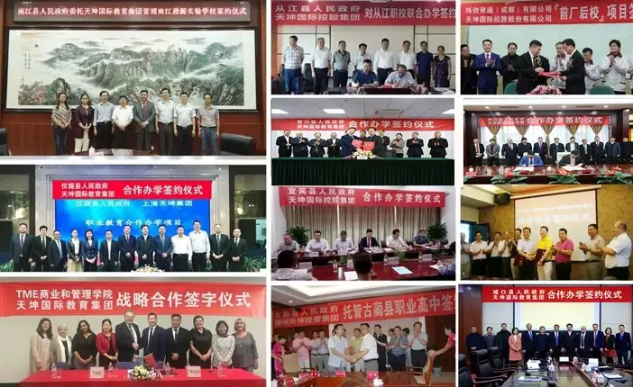 天坤教育的“PPP理论下的TOT合作办学模式”(国有公办民助)被中国职教界赞誉为“天坤模式”,目前已拥有31所天坤品牌的中等职业教育学校,是中国规模领先的中等职业教育连锁品牌;天坤教育还引进原汁原味的德国双元制教育体系,与台州职业技术学校等10余所高等院校合作开设中德学校;天坤教育集中优势资源打造出“智能制造+大健康”两专业业群,并与100余所高等院校开展深度共建;天坤教育还与富士康、华硕、纬创、宁德新能源等500强名企合作建设“前校后厂”现代学徒制学校,实施校企合作人才订制培养模式;天坤教育旗下天坤培训拥有近50个人才培训基地,提供岗前培训、创业培训、农民工培训等100余种培训,是中国规模领先的技能培训品牌;天坤教育旗下“慧眼实习”已与1000余所中高职院校合作开展实习教育合作,是中国规模领先的职教实习就业服务平台。