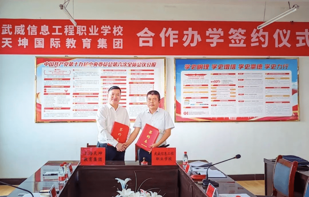 据悉合作协议达成后,天坤教育将在招生宣传、专业设置、师资培养、实训基地建设、职教高考、德育打造、优质就业等方面全面提升武威信息工程职业学校的办学内涵,集中全国优质教育资源全面赋能,力争用3-5年时间将武威信息工程职业学校打造成国家优质示范中职学校,并力争向高职院校转型!