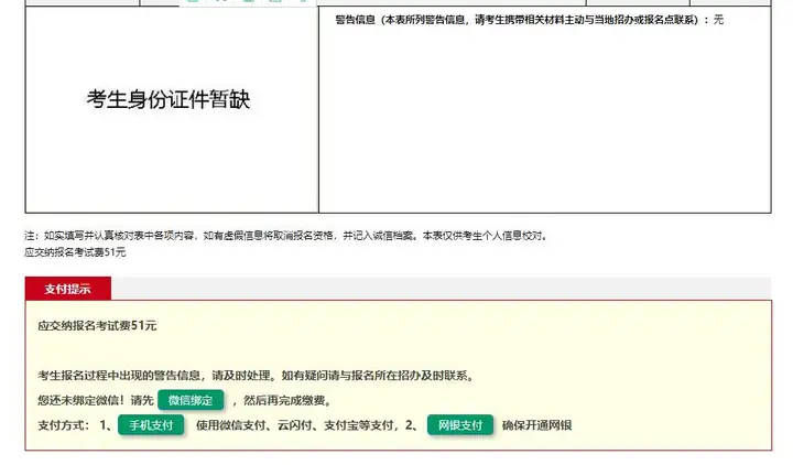 十三、绑定结束后,返回信息采集页面下方,点击绿色按钮“手机支付”,用微信扫一扫支付二维码,完成支付。