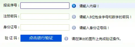 五、下面是进入到考生注册页面,填写上我给你们发的报名序号,注册密码,身份证号,点击验证。注:注册密码里凡是含“0”或“1”的,都是数字,没有字母。