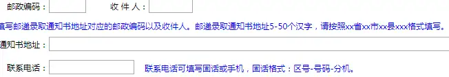 8、邮编及收件人、电话,由学生个人填写,请按照xx省xx市xx县xxx格式填写