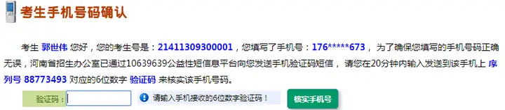 十、手机短信验证,手机会收到一个6位数字的验证短信,输入后点击核实手机号