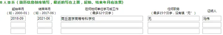 专业——高中——初中(注意简历填写顺序,学校名字,证明人名字,填完之后再次核对,以免填错)。