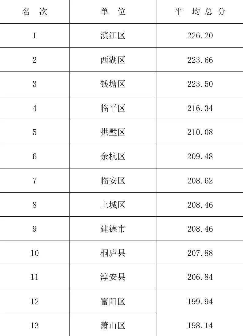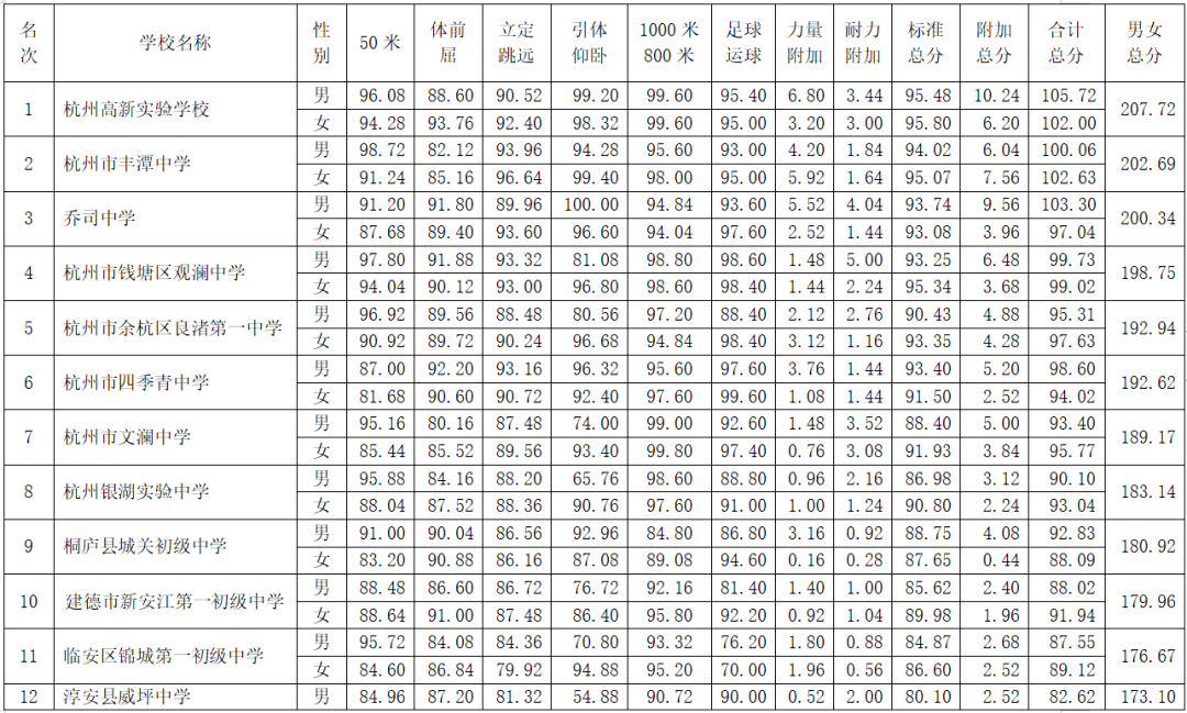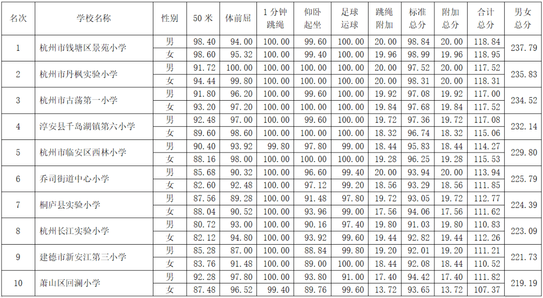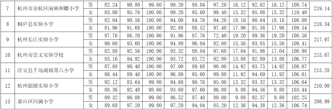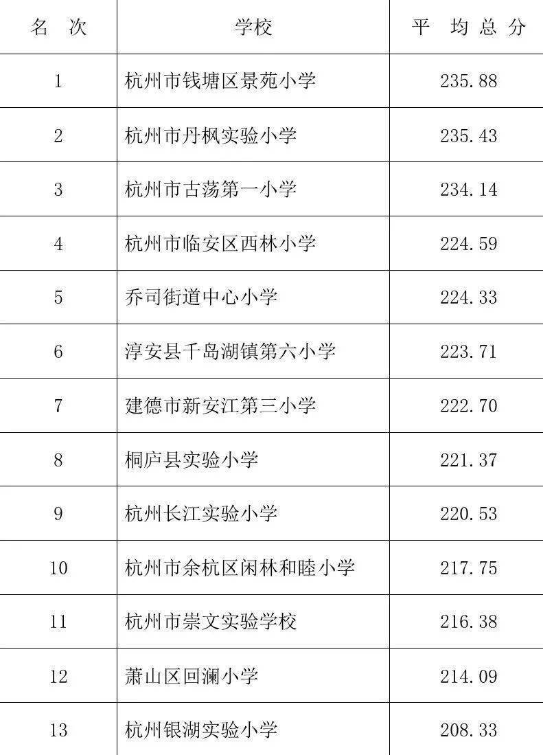 注:此次抽测,只是抽取了杭州每个区、县(市)的一所小学和一所初中学校相关年段学生参与,所以排名仅限于参与抽测的学校,共计13所小学,13所初中。