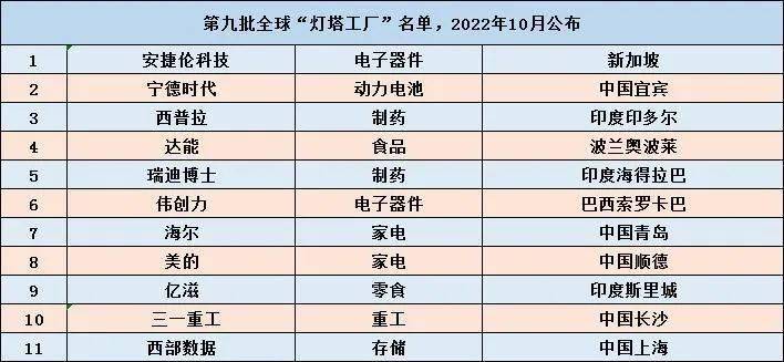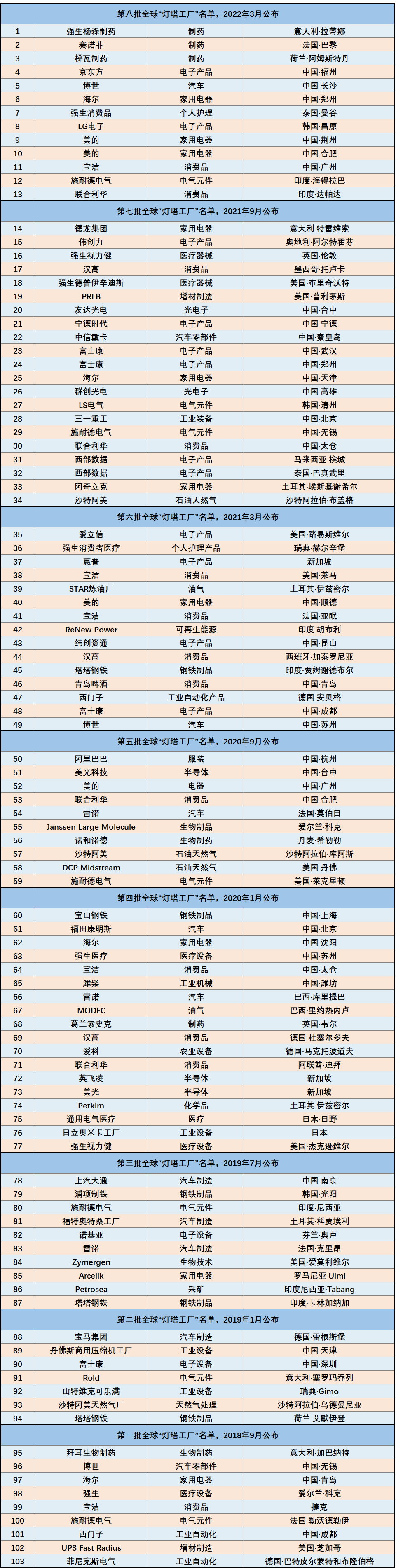附:前八批灯塔工厂名单