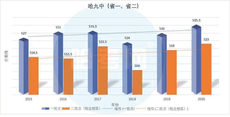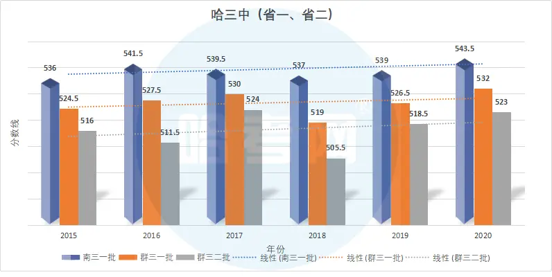 九所省重点高中2015-2020年录取分数线(及变化趋势图):