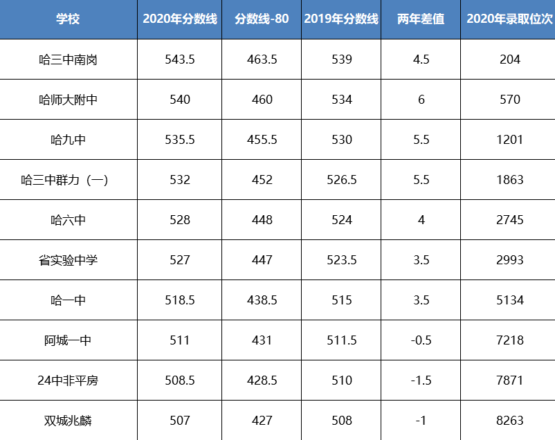 我们统计了2015年到2020年哈尔滨九所省重点高中的录取分数线。根据下面的统计,我们可以看到,今年九所省重点高中的大部分分数都有所提高,增幅最高的达到了6分。要了解分数上升的原因,首先要搞清楚分数划定背后的原理。