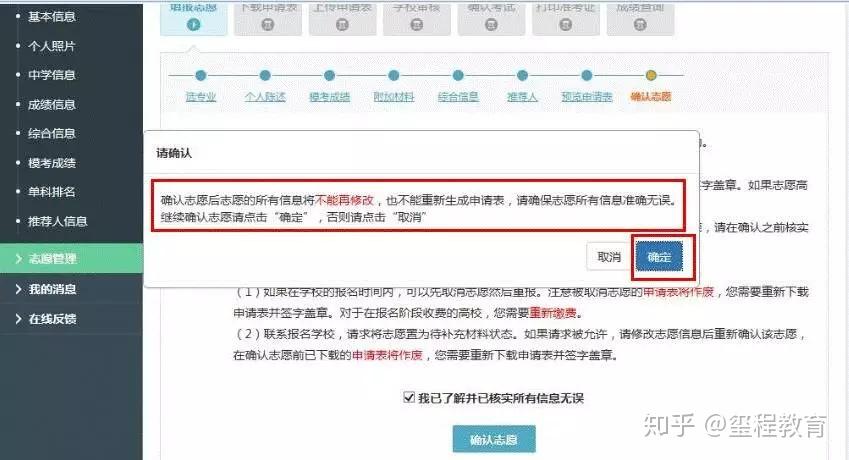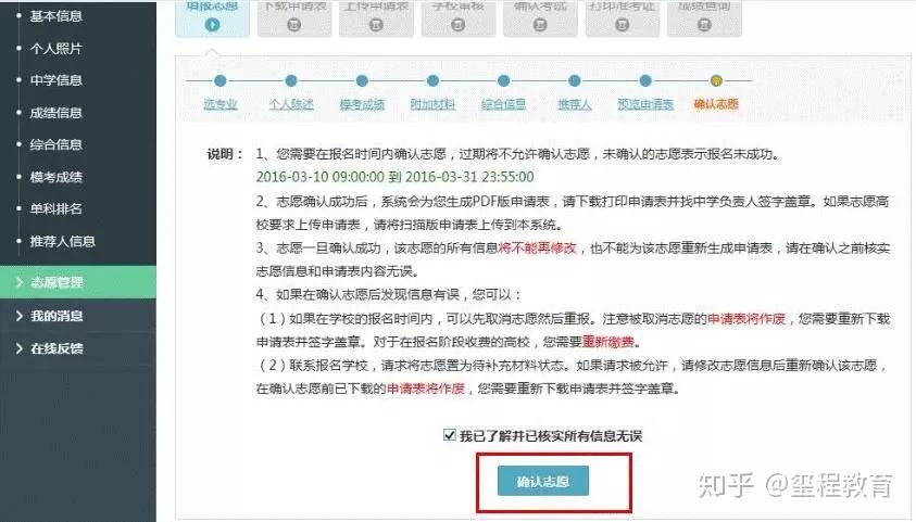 之后“确认志愿”仔细阅读说明,核实无误后点击“确认志愿”,如下图