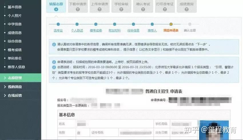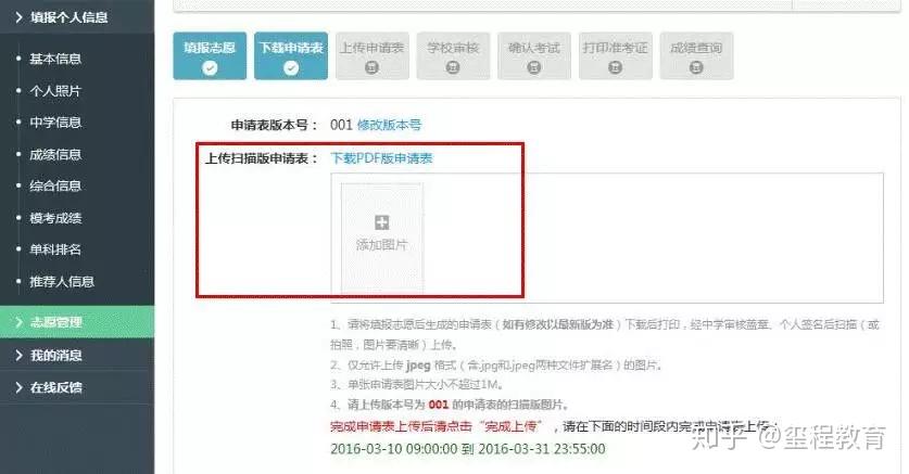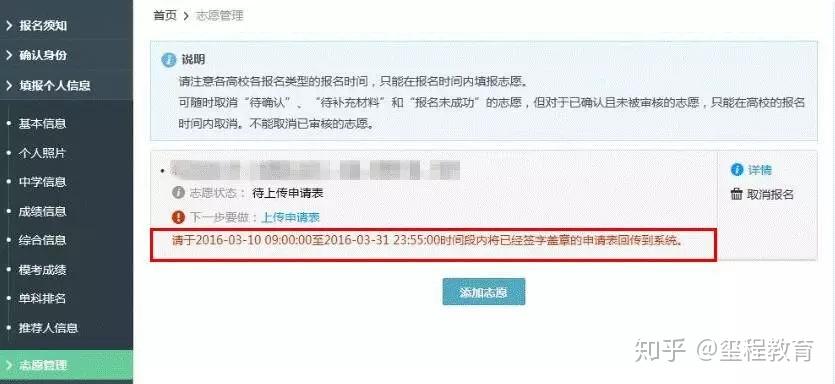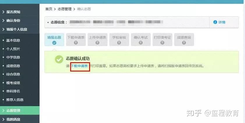 添加完成后进入下一步“志愿管理”。然后点击下图中的“下载申请表”