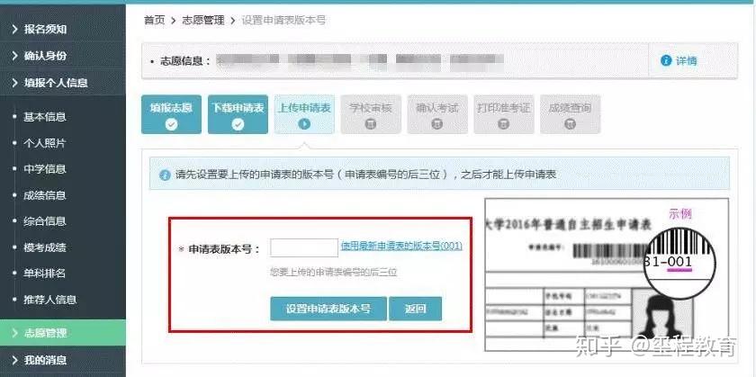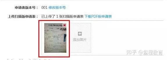 上传申请表,需填写“申请表版本号”,然后“上传扫描版申请表”