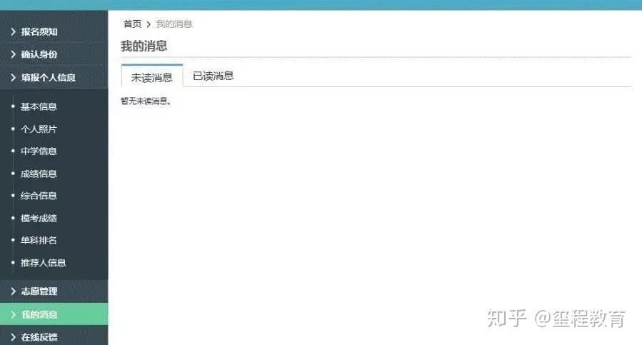 最后,考生可点击“我的消息”查看学校通知等消息,如下图