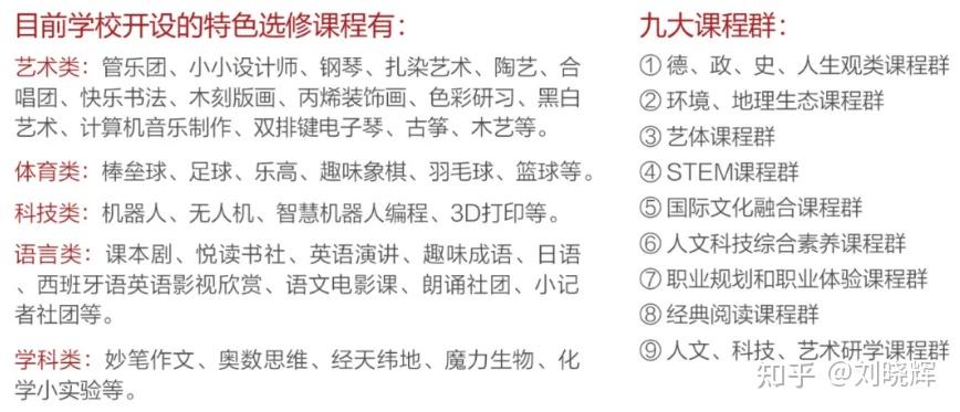 有运动技能、艺术审美、科学品质、人际沟通、职业技能、社会认知等领域的多门学校课程,例如:衍纸、不织布、彩泥、带我一起看世界、面点小巧厨、口风琴、魔方、3D涂鸦、团体心理游戏、演讲与口才、科学实验、歼十战斗机、乒乓球等等。