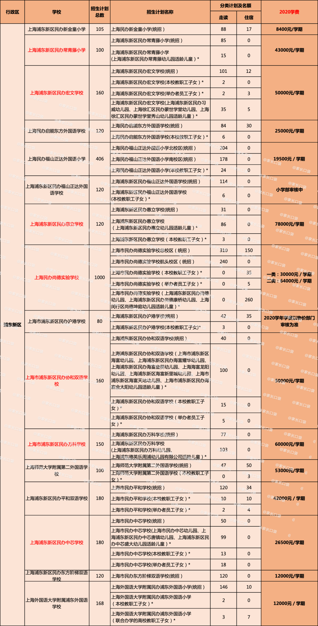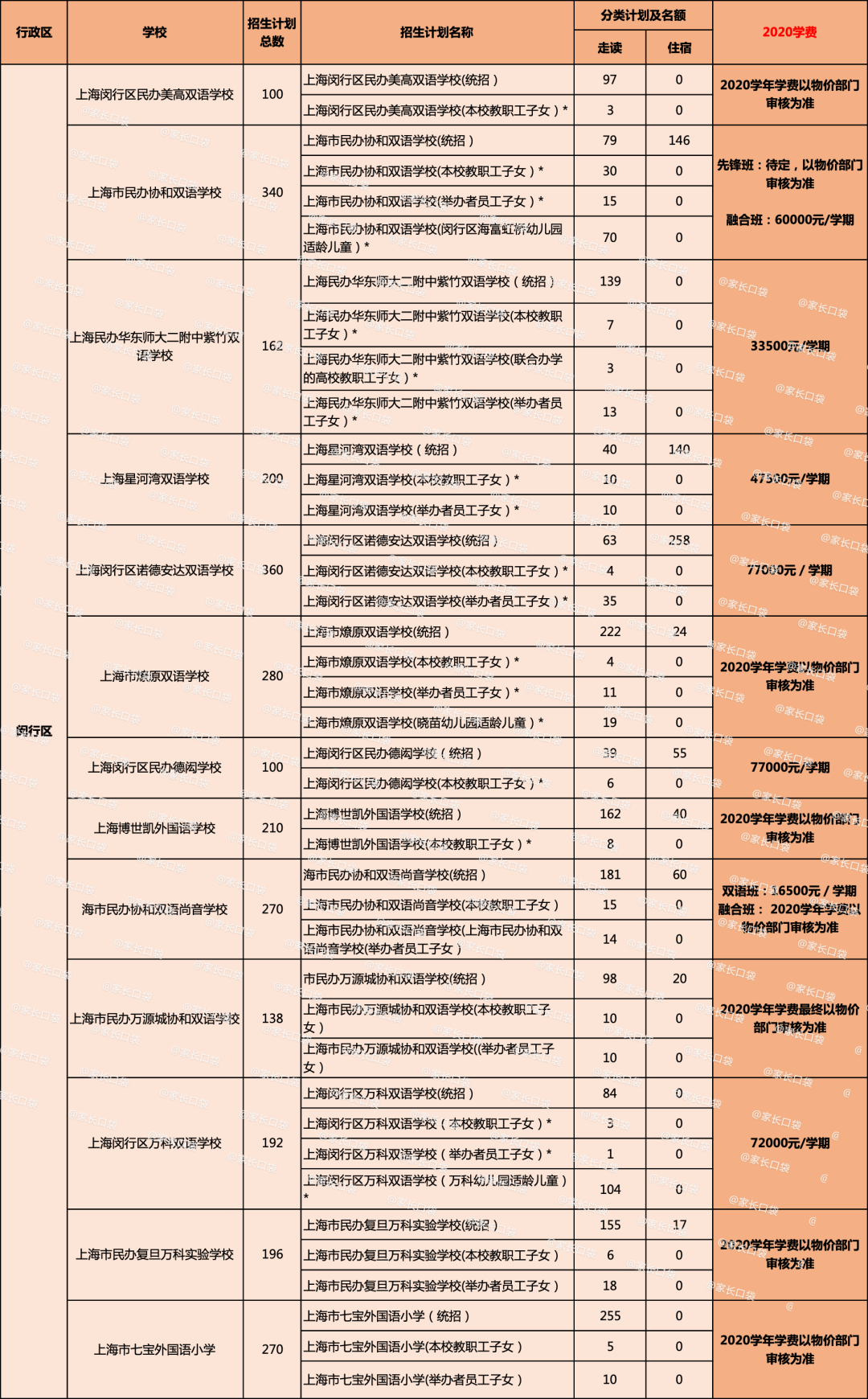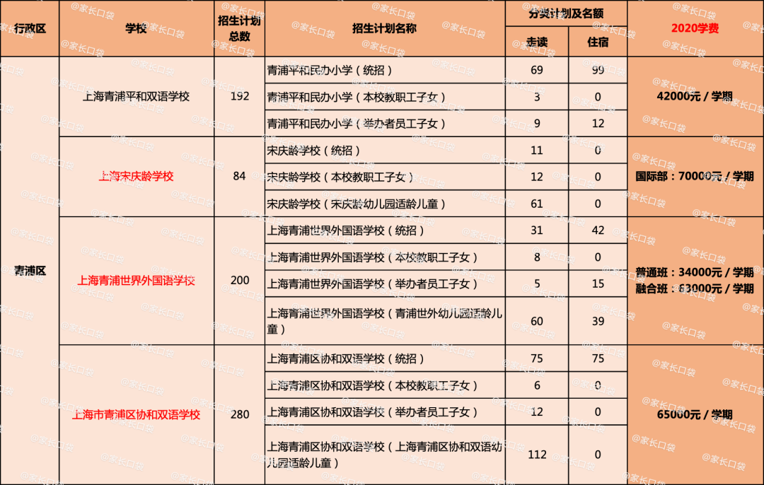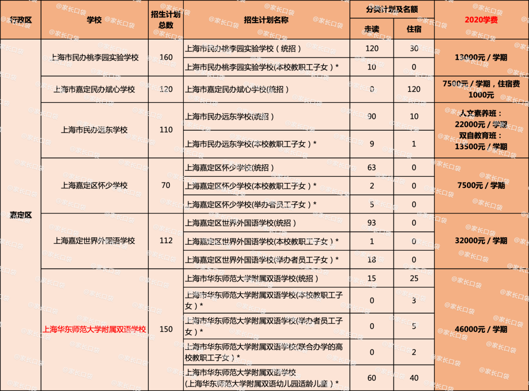 各区民办学校学费&招生计划概览