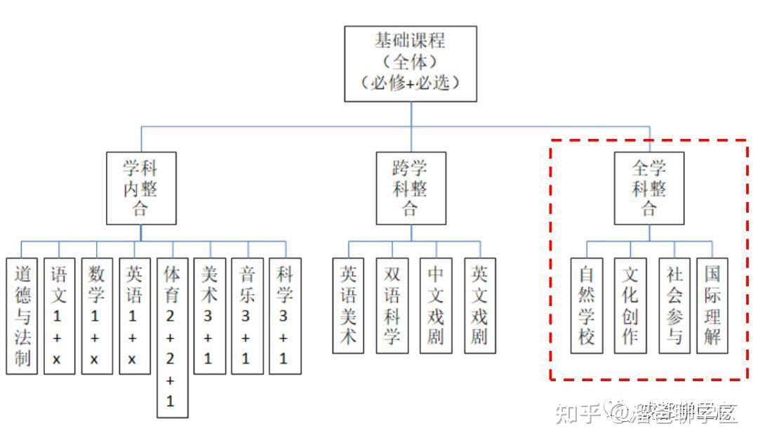其中的基础课程为周一至周四,通过学科内整合、跨学科整合,全学科整合来教学。