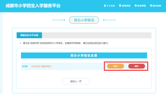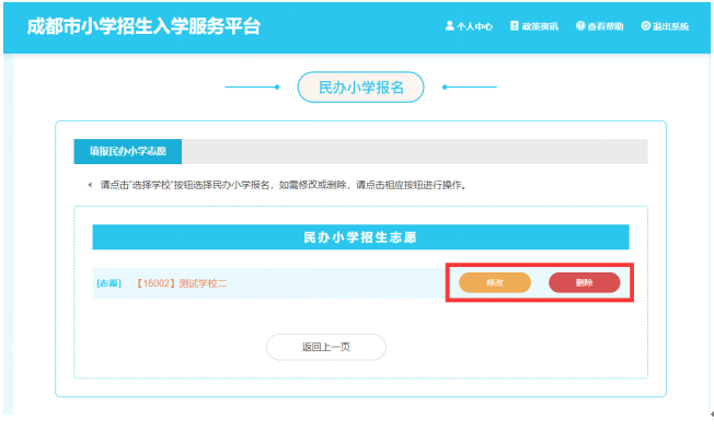 如需修改或删除已填报的志愿,可在报名期间进入填报志愿页面进行操作。