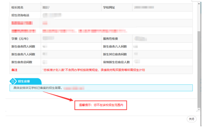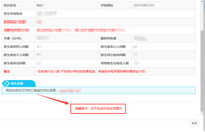 若系统提示:您不在该校招生范围内,表示您所属区域不在该校的招生范围内,您不能参加该校民办小学报名。