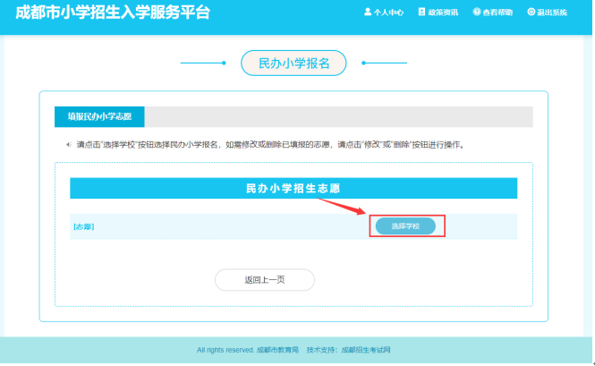 再进入民办小学报名系统填写个人基础信息,填写完后即可选报学校。