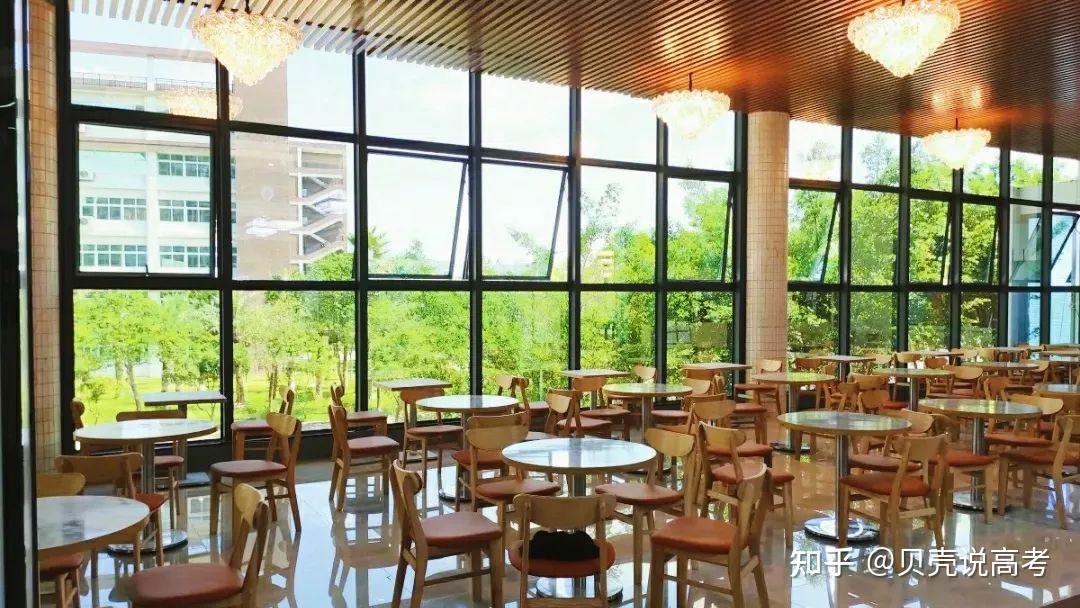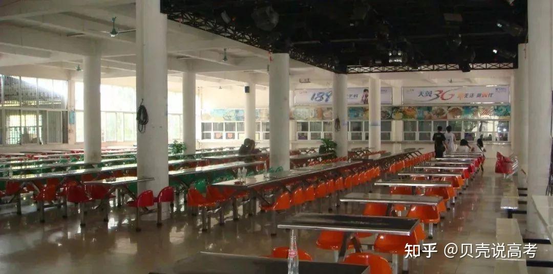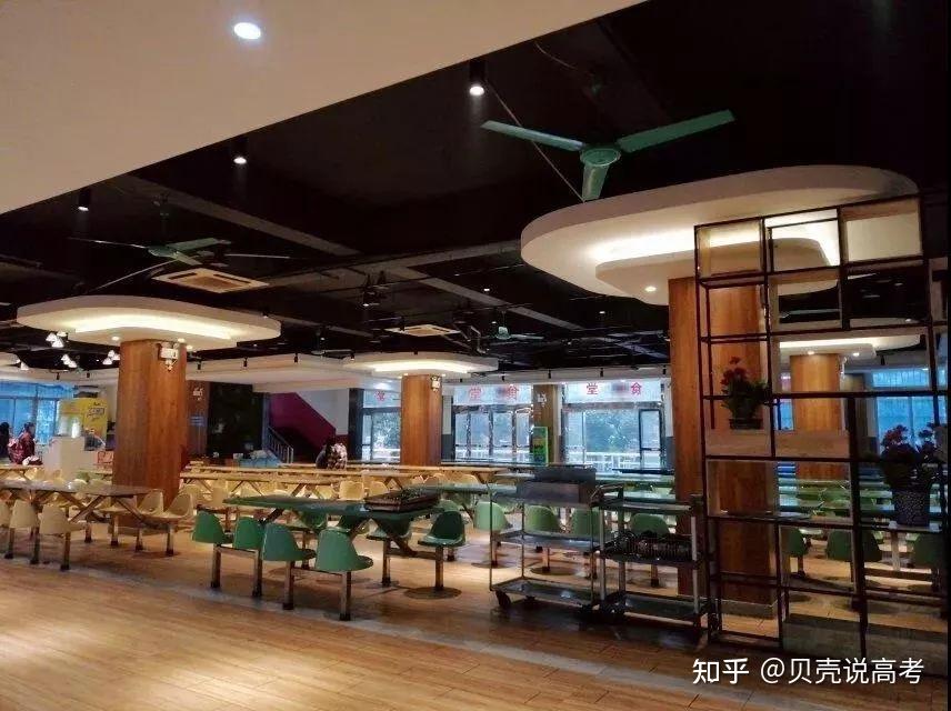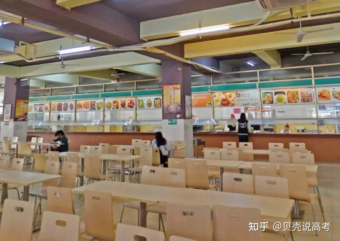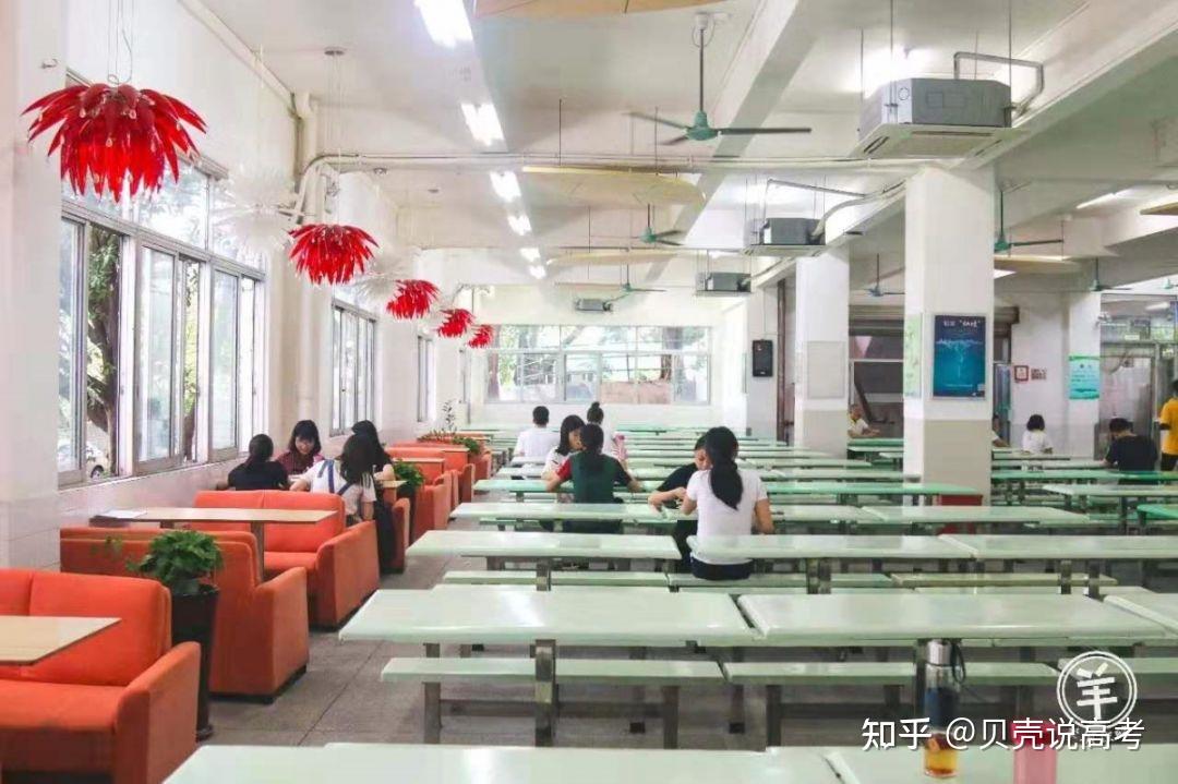 招待所,这里的环境最好,菜式也多,仅是白饭也是相当好吃的,周一到周五中午期间,一楼用作教师饭堂,二楼为学生饭堂;晚上学生饭堂一、二楼都开放,二楼有舒适的大沙发,有大圆桌,还有一个露天食区,望眼过去能欣赏到校园的人工湖;周六、日有面食,面料是自主挑选的,价格在6元到20元不等。