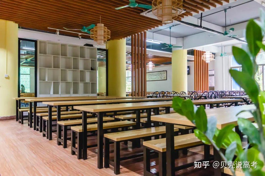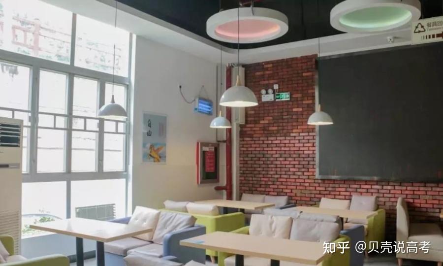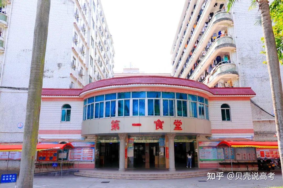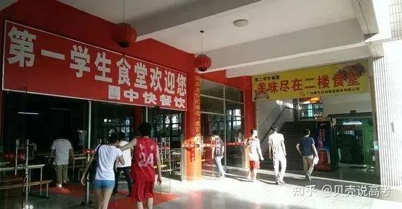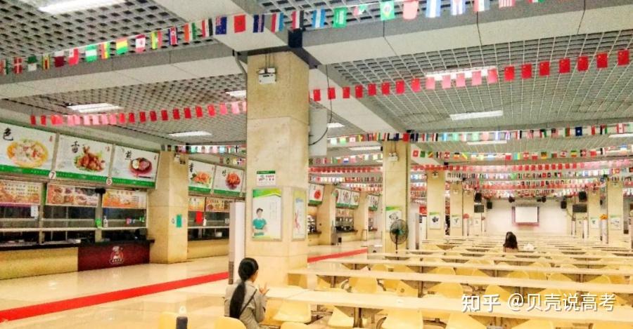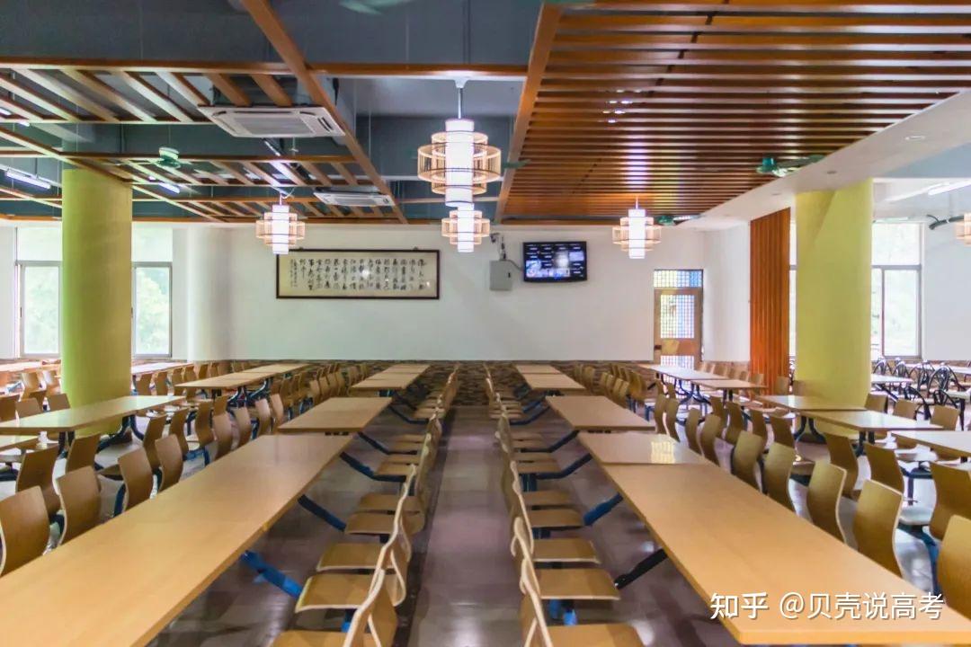 招待所,这里的环境最好,菜式也多,仅是白饭也是相当好吃的,周一到周五中午期间,一楼用作教师饭堂,二楼为学生饭堂;晚上学生饭堂一、二楼都开放,二楼有舒适的大沙发,有大圆桌,还有一个露天食区,望眼过去能欣赏到校园的人工湖;周六、日有面食,面料是自主挑选的,价格在6元到20元不等。