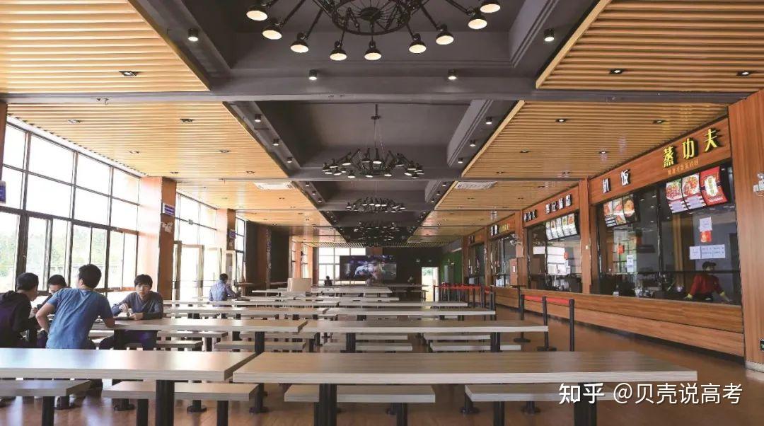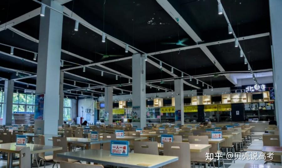 A食堂位置:距离学思楼(教学楼)和知行楼(实训楼),老师办公室最近,最为火热的食堂之一