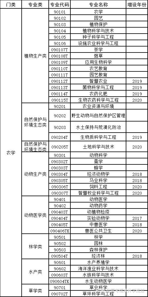 农学门类下有植物生产、自然保护与环境生态、动物生产、动物医学、林学、水产、草学等几类专业。