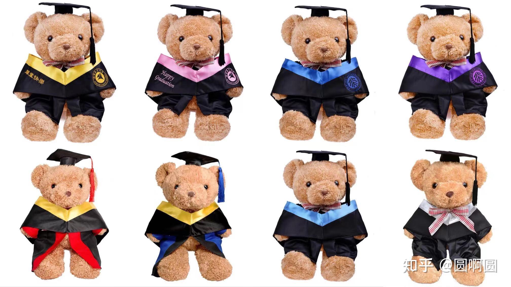 学士服、硕士服和博士服都有,配色有适合男生的,也有适合女生的,拿着这只毕业小熊拍照肯定会格外上镜。