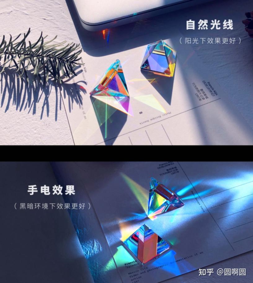这块光之金字塔采用的是K9人造水晶玻璃,它对光非常敏感,只要有一点点光,就会随着角度变化,折射出不同的光效,理工男大概会比较喜欢这份礼物。