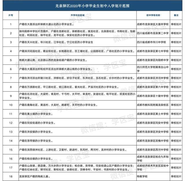 附:龙泉驿区2020年小升初入学划片范围
