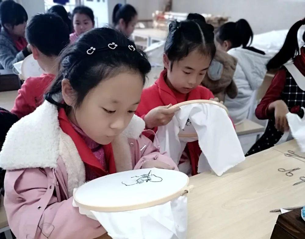 在开齐开足国家课程的同时,重点打造艺术特色课程。美术方面,在全校分段开设传统特色项目,成立了蜀绣工作坊,将蜀绣课程作为学生实践课,学生从打结到穿针,从分线到走线,克服了浮躁心理,同时也感受到蜀绣文化的博大精深。