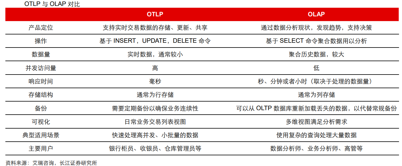 按应用类型分类:分为操作型数据库(OLTP)和分析型数据库(OLAP)。