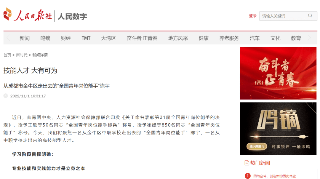 优秀!人民日报社专题报道洞子口职高优秀毕业