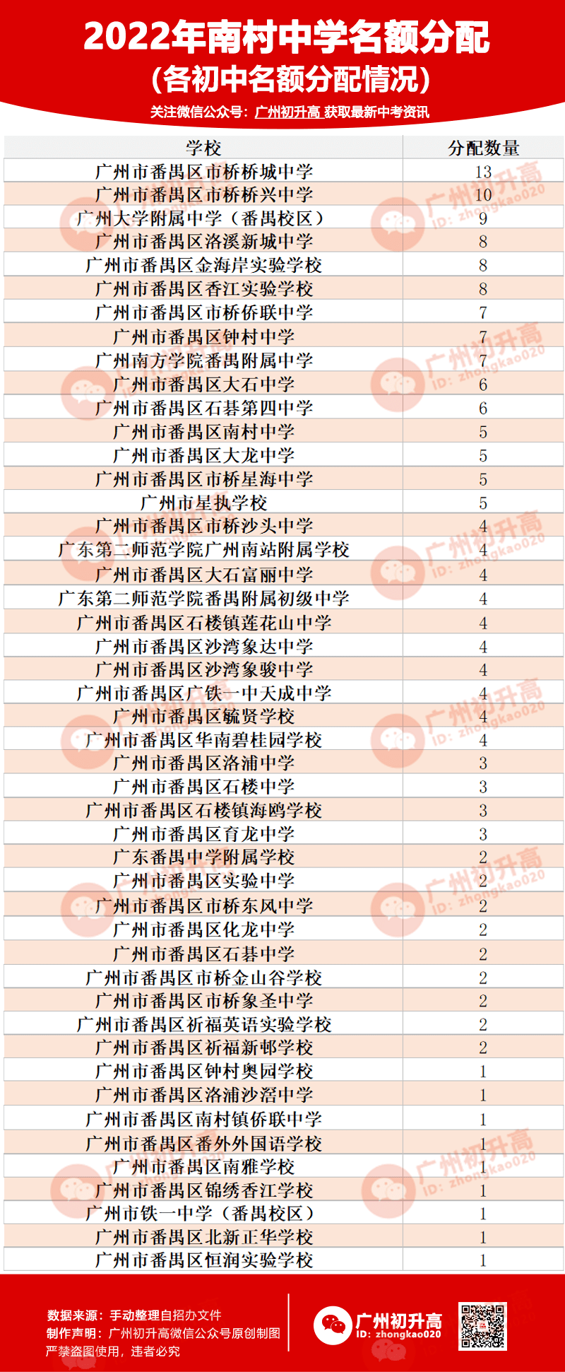 数据 | 2022南村中学的名额都分配给了哪些初中学