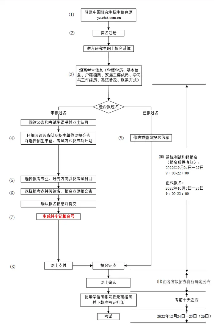 注: (1)考生应在规定时间登录“中国研究生招生信息网”(网址: https://yz.chsi.com.cn)浏览报考须知,并按教育部、省级教育招生考试机构、报考点以及报考招生单位的网上公告要求报...