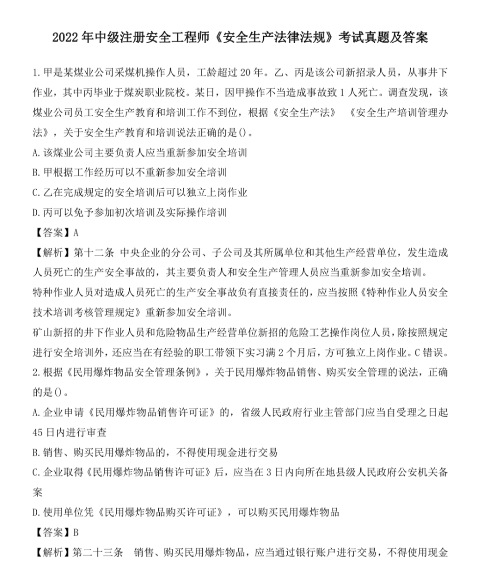 完整版|2022年注安考试真题及答案(法律法规、管理、技术)...